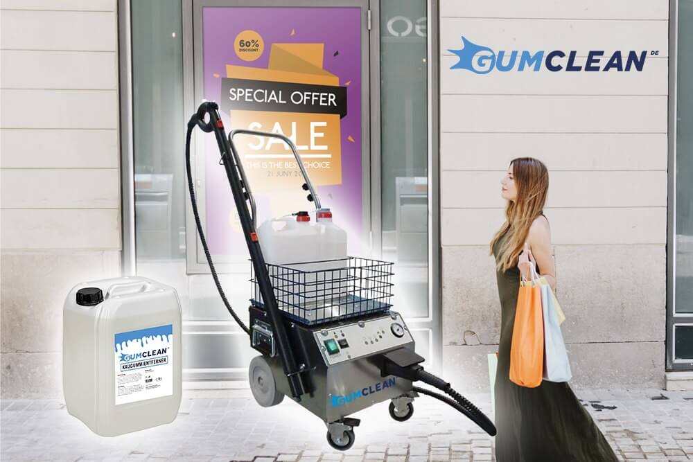 Obwohl der GUMCLEAN Kaugummientferner sowohl Ph-Neutral ist und KEINE Gefahrstoffe beinhaltet, ist die Verwendung einer persönliche Sicherheitsausrüstung , wie Handschuhe, Sicherheitsbrille, lange Arbeitshosen, sowie geschlossene Schuhe immer empfehlenswert. Diese kann vor möglichen Verbrühungen durch das Heißdampfgerät schützen. Richten Sie niemals die Lanzenspitze des Heißdampfgerätes auf Menschen oder andere Lebewesen. GUMCLEAN KAUGUMMIENTFERNER beinhaltet keine Gefahrstoffe und erfordert somit keine Absperrungen. Erkundigen Sie sich vor Arbeitsbeginn über die gängigen und lokalen Vorschriften bezüglich Arbeitssicherheit besonders bei Arbeiten im öffentlichen Bereich.